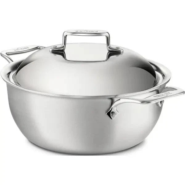 - The D5 Stainless Steel Brushed Dutch Oven, 5.5 quart also known as a cocotte, features a round bottom that facilitates effortless stirring without sticking. Perfect for braising, simmering, and slow-cooking.